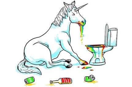 Even unicorns ocassionally stumble into a bar in their fairytale lands and wake up with the stench of regret, oh, and throw up.
