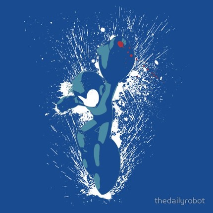 The Blue Bomber ascends in an explosion of wet paint. Splatter, Mega Man, for everlasting peace!