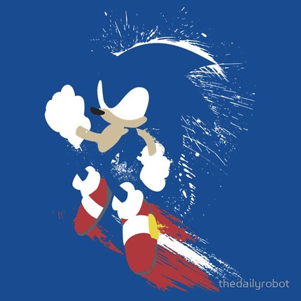 The world’s fastest hedgehog blazes (blue) onto a shirt in a splattery vector style