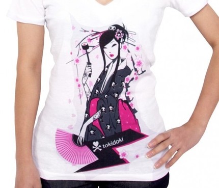 Stylish womens v-neck tee featuring our tokidoki girl and sakura blossoms.
