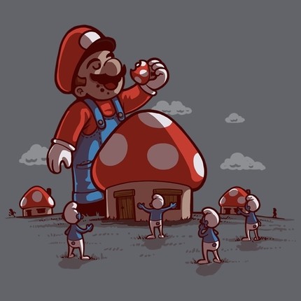 Funny t-shirt mashup between Mario and The Smurfs. We keep seeing mario as a villain, poor smurfs are losing their homes!