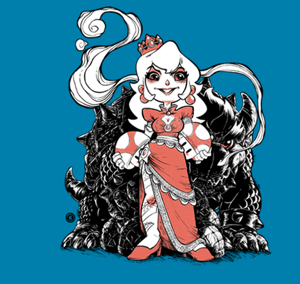 A Yakuza style rendition of Princess Peach with a menacing Bowser at her side.