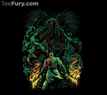 Kratos the god killing machine turns his head towards monster of the sea Cthulhu.