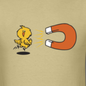 Cute little chicken being pulled in by a magnet.