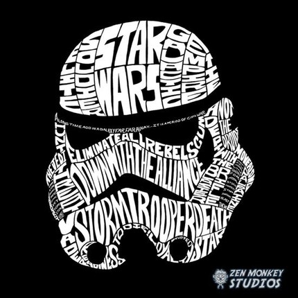 This design features words, phrases, and quotes that is found to describe a Stormtrooper, as well as the Star Wars universe.