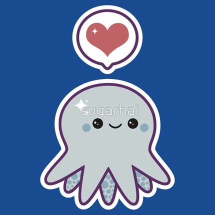 Super cute baby blue octopus with happy face and love heart!