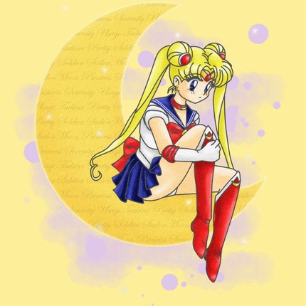 Pretty Sailor Moon sitting on the Moon.