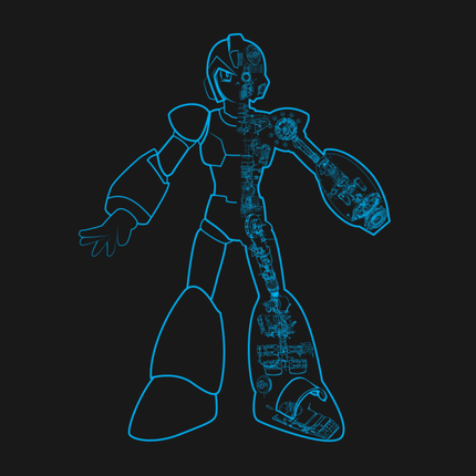 The original Reploid appears in a glorious cutaway-schematic style in this piece. You can only see half of him though, so you won't be able to build your own X just yet!
