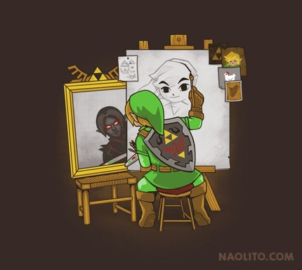 Homage to these times where blowing a cartridge was the solution to a gamer's problem. Link is using a cartridge instead of his famous ocarina.