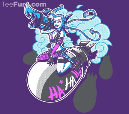 It was a concept I hadn't seen delivered yet. I love this girl and pinups so this was prime for parody, especially since I've seen other 'bombridingpin-up' shirts but almost none of them had characters that actually rode bombs!