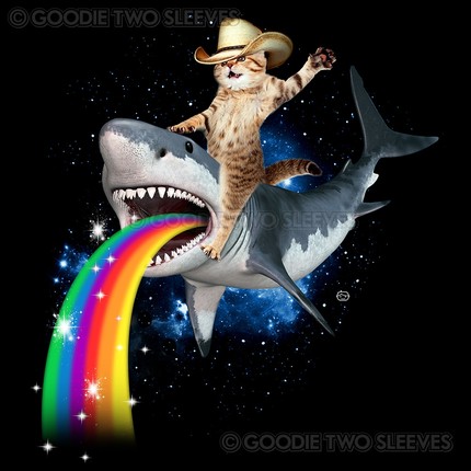 When cats aren't busy laying down or being jerks, they are outer space shark rodeo experts.
