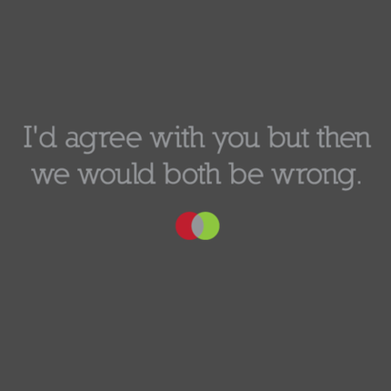 Believe me, I would have agreed with you hours ago but then I would be going against everything I believe. So what’s the point in us both being wrong?