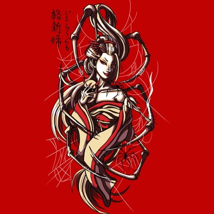 "According to some stories, a Jorogumo is a spider that can change its appearance into that of a seductive woman. In many of these stories, Jorogumo changes its appearance into a beautiful woman to ask a samurai to marry her, or takes the form of a young woman carrying a baby (which may turn out to be a spider's eggsack)"