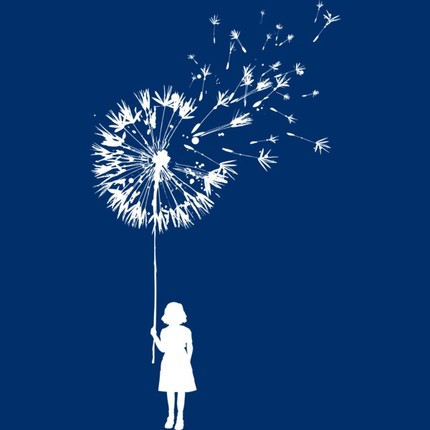 Surreal illustration of a girl with giant dandelion flower