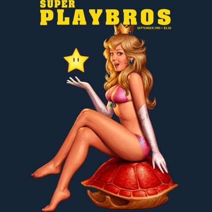 Mash up of Super Mario Bros and a vintage Playboy cover, with a pinup version of Princess Peach on the cover!