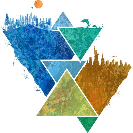 Geometric of Forest, ocean, and the city.