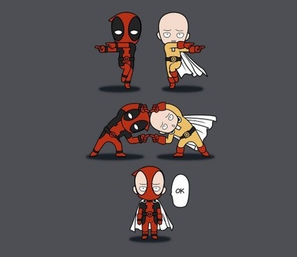 Fusion between two iconic comic characters from Deadpool and One Punch Man.