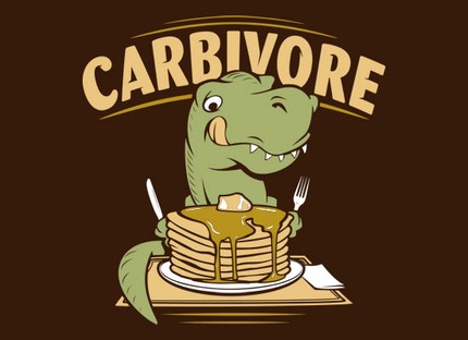 pun food t-rex tyrannosaurus dinosaurs pancakes fork carbohydrates