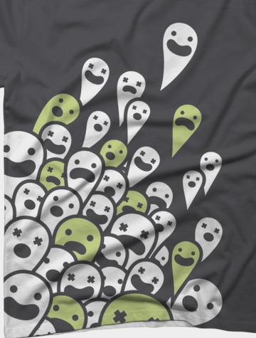 Don't let these ghost haunt you! Ghostez takes cartoon ghost that wraps around towards the back with green and white ghosts. This awesome shirt will have you turning white, like you just saw a ghost!