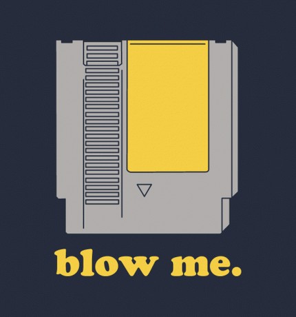 Because "blow me and then put another cartridge on top of me once I'm in the NES" wouldn't fit.