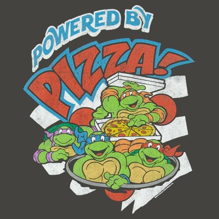 This Teenage Mutant Ninja Turtles features the four Turtles and the tagline Powered By Pizza. So if the Turtles use Turtle Power but they are really powered by pizza shouldn't they say Pizza Power?