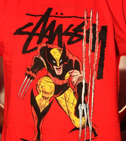 Pretty awesome shirt from Stussy with Wolverine slashing up the front.