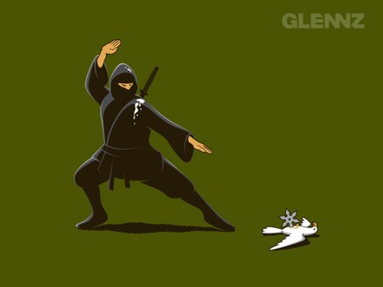 Some say it's good luck, but ninjas don't see it that way. If a bird decides to take aim from above, they should prepare to be aimed upon!