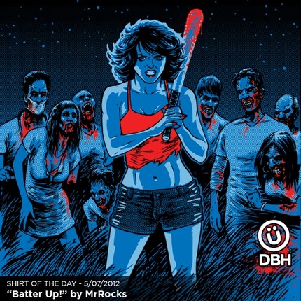 Who's a knock out in this shirt? Let's play ball with some zombie heads and a pin-up girl shirt. Knockin' homeruns with the walking dead while she makes you drool