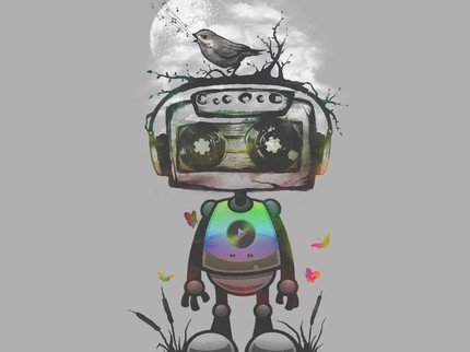 Imagine a robot that played music from it's face. Imagine no more, it is here. Cool art and subtle neon shading make this a must have tee. Robots and nature combine to make a super cool art tee. A retro character based tee for all lovers of music and nostalgia. Cassette tapes are back!