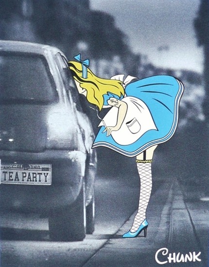 Hollywood the home of fun, fantasy and the unexpected... He may have "Tea Party" on his number plate but we suspect this driver hasn't pulled over to discuss the merits of Earl Grey versus Darjeeling. A typically irreverent Chunk tee where facts meets fiction in downtown wonderland.