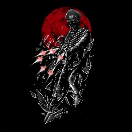 Destroy! Destroy! Destroy! This guy is a mean son of a gun. With his gas mask face and oversized gun this one with reek havoc on everything. A dark shirt for a cool guy with a macabre art fascination. This tee will blow your mind, make you look tough and make small kitten run and hide.