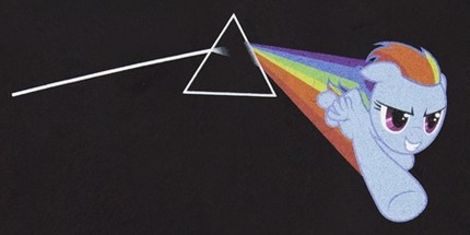 This My Little Pony: Friendship is Magic shirt shows Dash coming out of a prism in an ode to the Pink Floyd Dark Side of the Moon artwork.