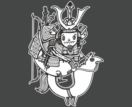 This cute little tubby fella is the last samurai. Avoiding conflict and riding around on his chubby horse is what he does best. A cute character tee just for fun.