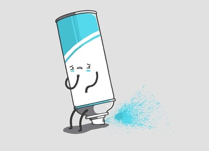 Aaron Jay (randyotter) came up with a pretty cute design where an aerosol spray-paint can had an "accident"