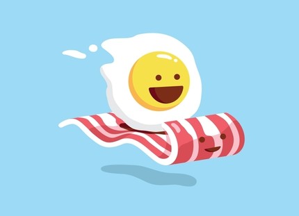 george otsubo: The inspiration came during breakfast while I was eating eggs and bacon and thought it would be funny if the Bacon was like Aladdin's magic carpet.
