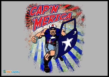 He defends the land of the free and the home of the brave. He recites the pledge before breakfast each morning. He's Cap'n 'Merica.
