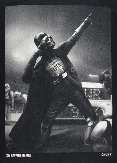 This tee is a must for any Star Wars fan, featuring Darth Vader celebrating in style after winning the 100M at the Empire Games. Usain bolt would be proud...