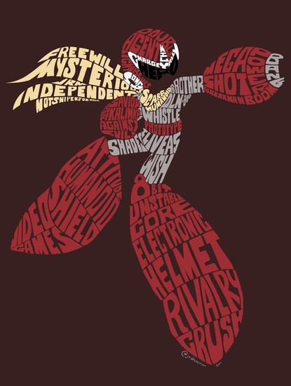 An homage to the classic game series, Mega Man. This handmade typography based off of Protoman was created using words and phrases to describe the character of a legendary video game series.