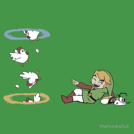 Link just found a new item, and is having a little fun! Now that’s thinking with chickens!