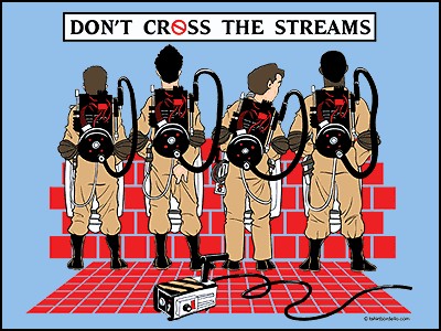 "There's something very important I forgot to tell you; Don't cross the streams. It would be bad..."