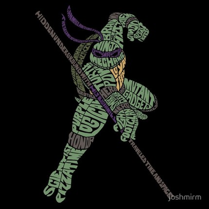 This typography design is an homage and inspired by Donnie from TMNT comics, cartoons, movies, and video games. All the words are handwritten to form a typography reminiscent of the oldest turtle, using words to describe him, the things he’s from, and feelings associate to him.