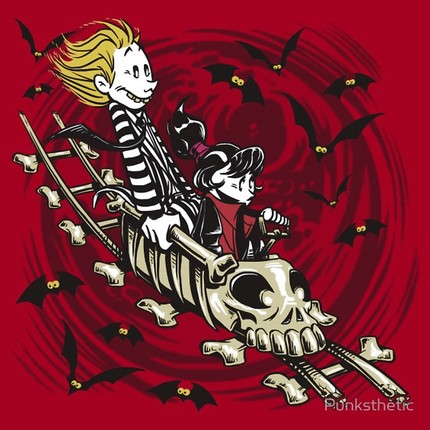 Beetlejuice and Lydia are best buds on this rockin' skullcoaster in the Neitherworld! Style inspired by Calvin & Hobbes.